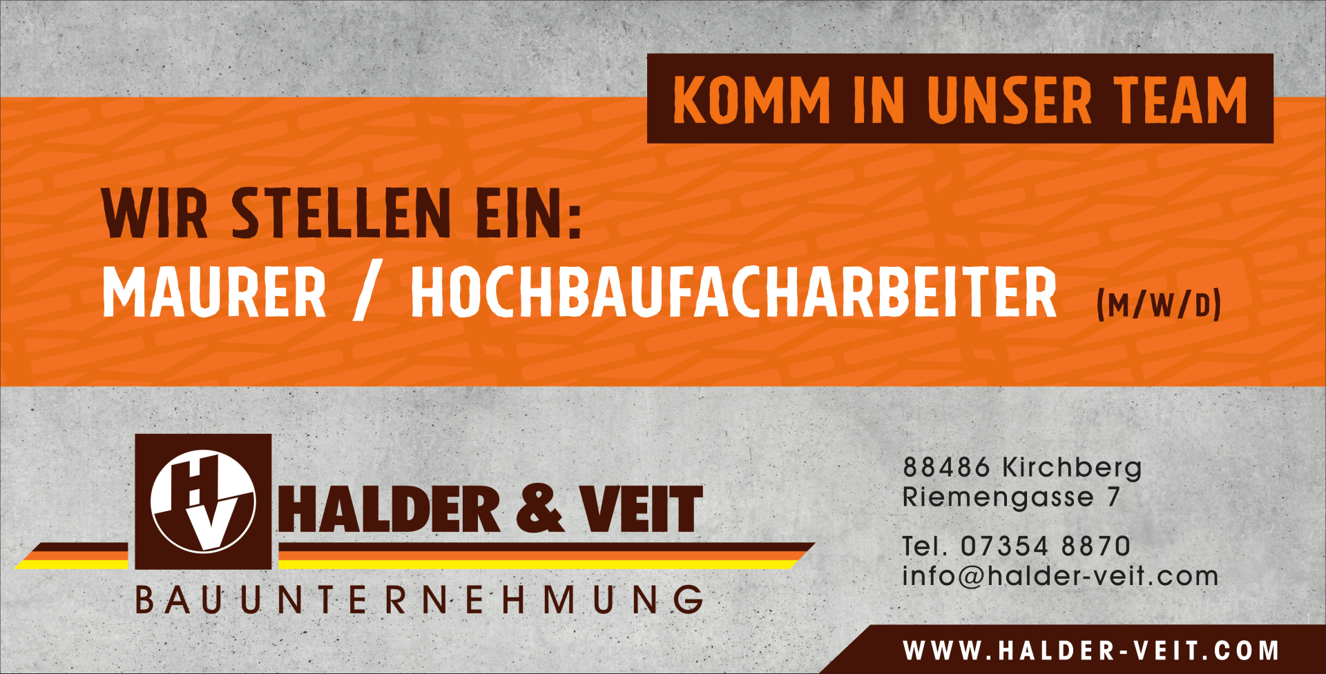 Die Firma Halder & Veit ist ein traditionelles, familiengeführtes Unternehmen in Kirchberg an der Iller, welches bereits 1915 von Johannes Halder als Maurerei betrieben wurde. Wir können somit auf mehr als 100 Jahre Erfahrung zurückblicken und verbinden Tradition mit Moderne.